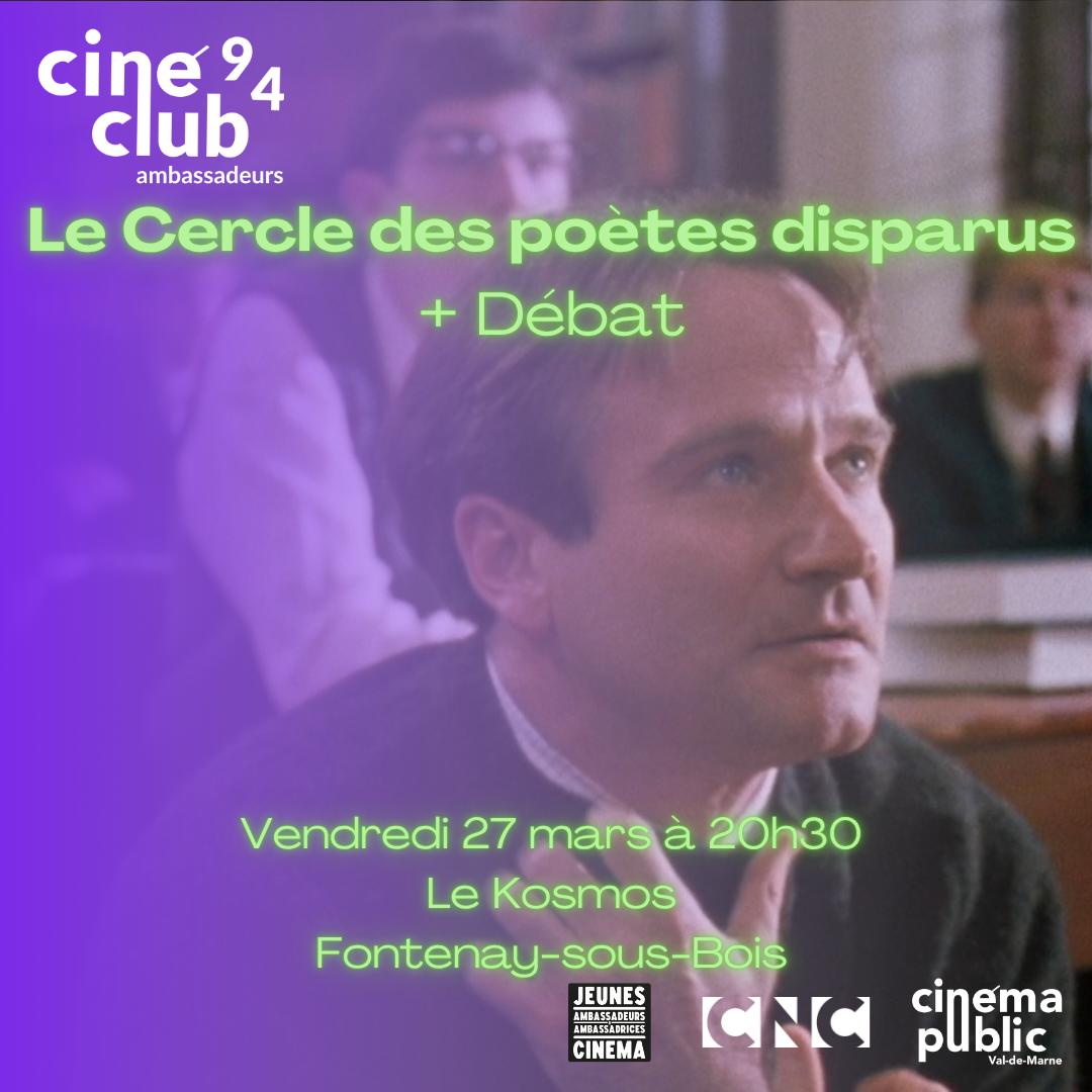 Projection+Débat: Le cercle des poètes disparus de Peter Weir + débat animé par les jeunes ambassadeur·ices du Kosmos – Vendredi 27 mars à 20h30 – Le Kosmos – Fontenay-sous-Bois.